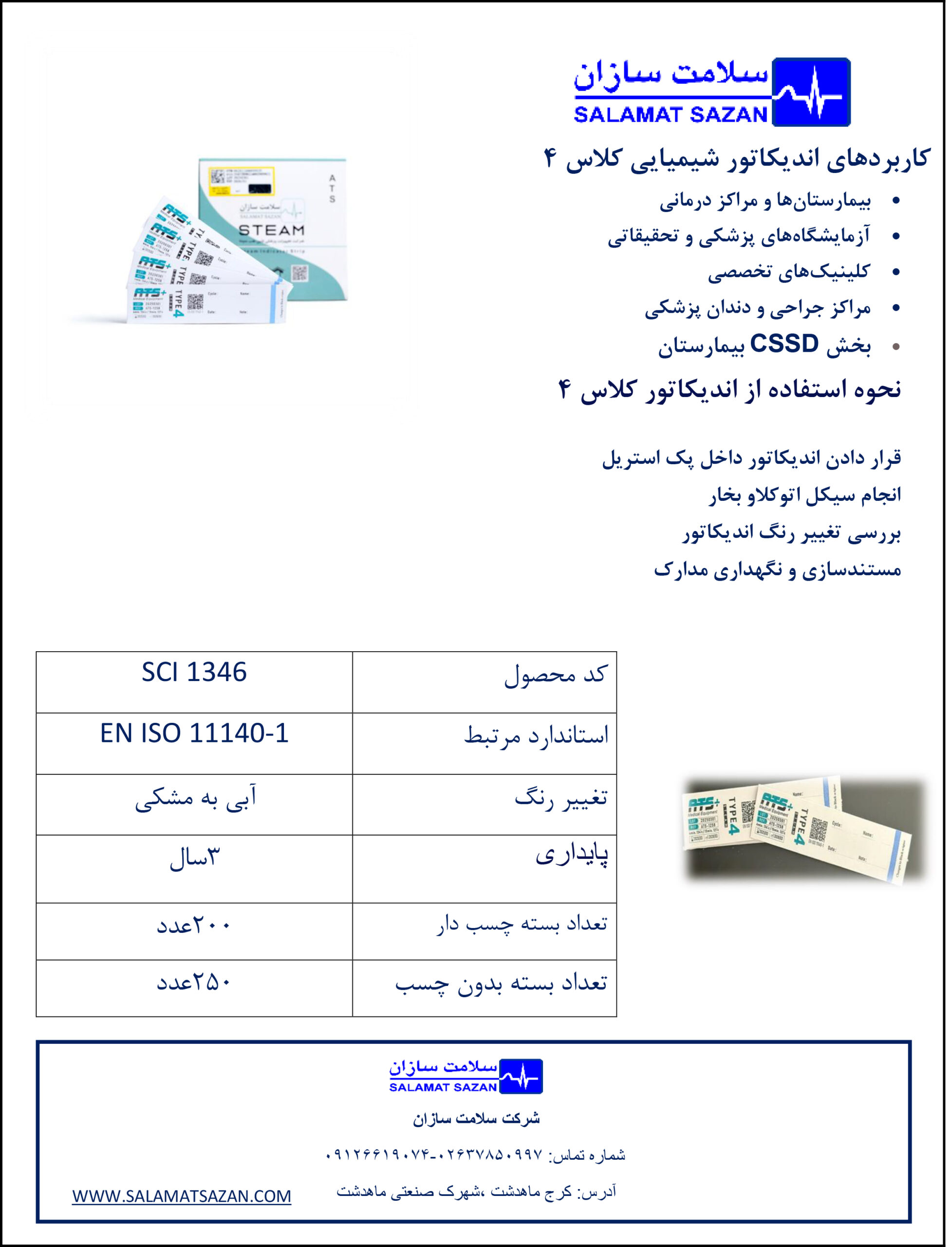 اندیکاتورهای کلاس ۴ دارای ماده شیمیایی حساس هستند که به شرایط استریلیزاسیون واکنش نشان میدهد. اگر دما، زمان و بخار به مقدار کافی وجود داشته باشد، رنگ نشانگر تغییر کرده و این تغییر نشانهای از کامل بودن فرایند است.